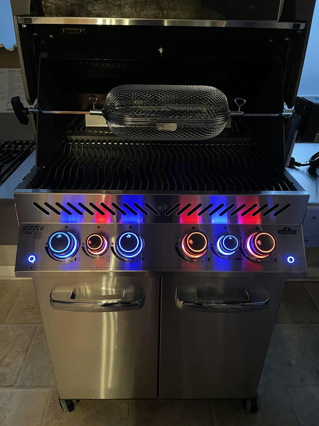 The Napoleon Prestige® 500 Propane Gas Grill with Infrared Side and Rear Burners is the total grilling package; with a stunning all stainless steel hood and stainless steel construction, this cart model has the capabilities of a full outdoor kitchen. With four main burners, an infrared rear and side burner, this grill can cook meals using eight unique cooking styles. Grill for a crowd with a capacity for up to thirty hamburgers, and up to eight more on the side burner. You'll know it's a Napoleon with the Iconic WAVE™ cooking grids for those distinctive sear marks. Not just durable on the outside; under the lid, is the same quality stainless steel used for the tube burners, dual-level sear plates and cooking grids. Seven stainless steel sear plates provide extra surface area for any drippings from your food to vaporize, avoiding flare-ups. Never leave your barbecue on again as all the Prestige® series grills come with the SafetyGlow feature where the control knobs glow red when the burner is on.