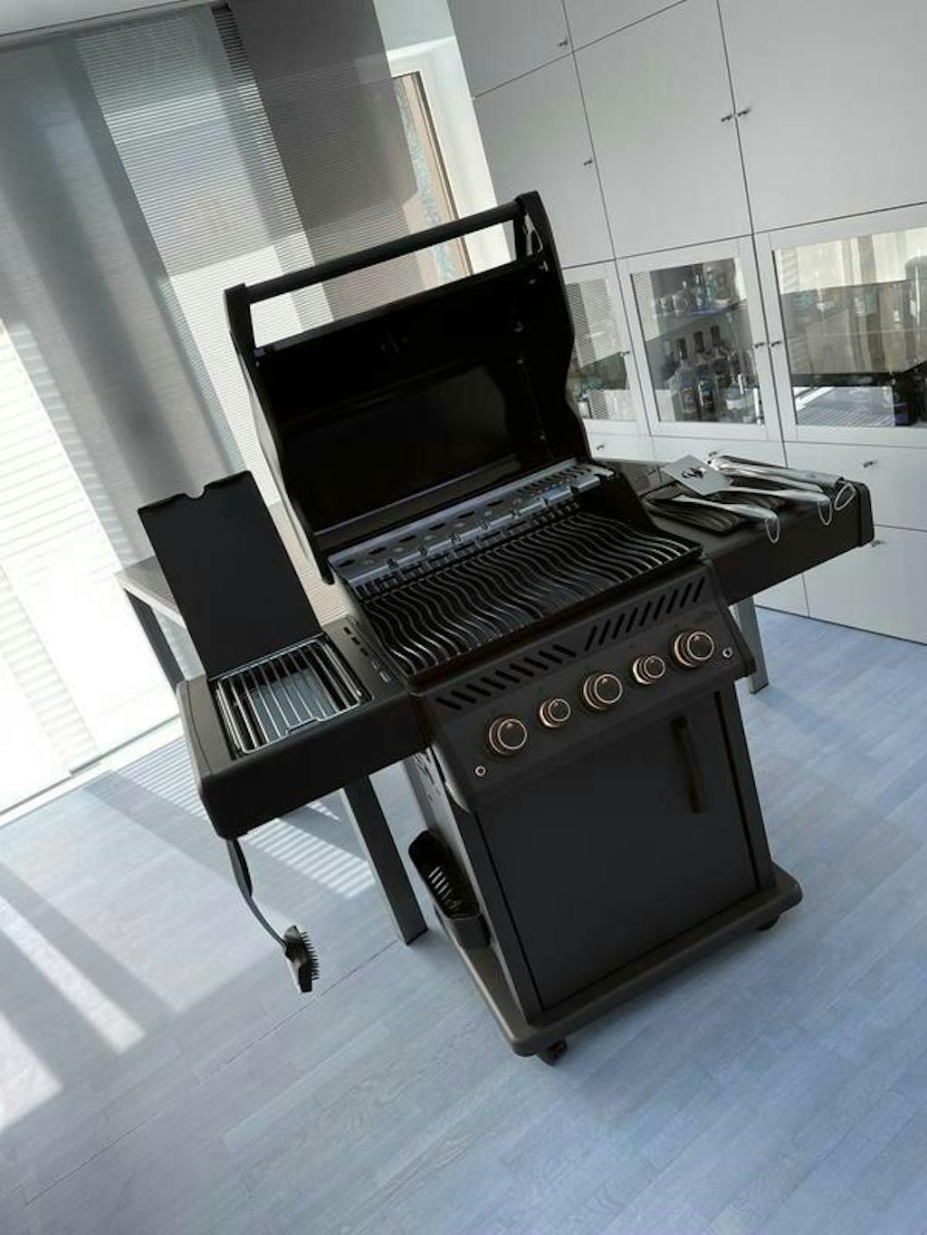 Deep and dark, the matte black Phantom Rogue® SE 425 Propane Gas Grill with Infrared Side and Rear Burners is a barbecue like no other. From the top of the lid to the easy to move locking casters, this gas barbecue is completely silky matte black. The edgy Phantom Rogue® SE features maintenance-free, stainless steel cooking grids and an integrated multifunctional grilling rack - ideal for entertaining. Sear the perfect steak or create a delightful side dish over the generous infrared sear station side burner. Use the rear infrared rotisserie burner to slow roast food to perfection. The generous folding side shelves provide plenty of prep and serving space while ensuring that your space is maximized. This luxurious matte black barbecue won't leave you in the dark either, the ergonomic knobs are backlit to ensure that late-night entertaining is easy. The Phantom Rogue® SE 425 Gas Grill is more than just a look. It's a lifestyle.