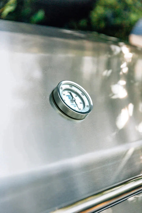 The freestanding Estate Grill is the same luxury gas grill, just offered on a cart. Every grill feature—interior and exterior lighting, spring-assisted hood, rotisserie storage, and more—was crafted with precision to meet the highest quality standards. Designed and built entirely in the USA, the cart features soft close drawers, two storage drawers with durable track slides*, propane tank storage, and high weight-capacity shelving.