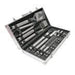 The Cal Flame Utensil Set includes (3) Stainless Steel BBQ Utensils, (1) Apron, (1) BBQ Mitt, and (1) Utensil Carrying Bag.