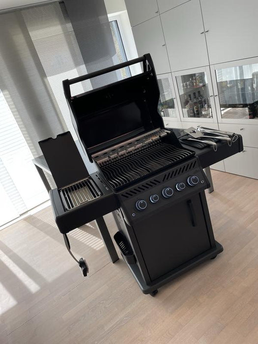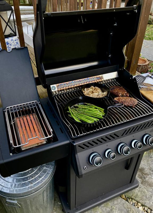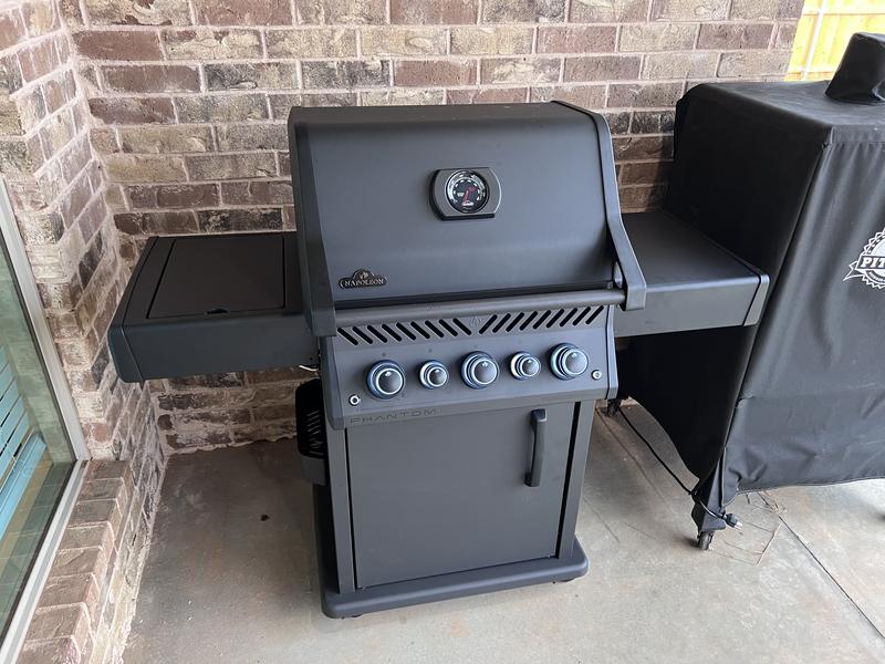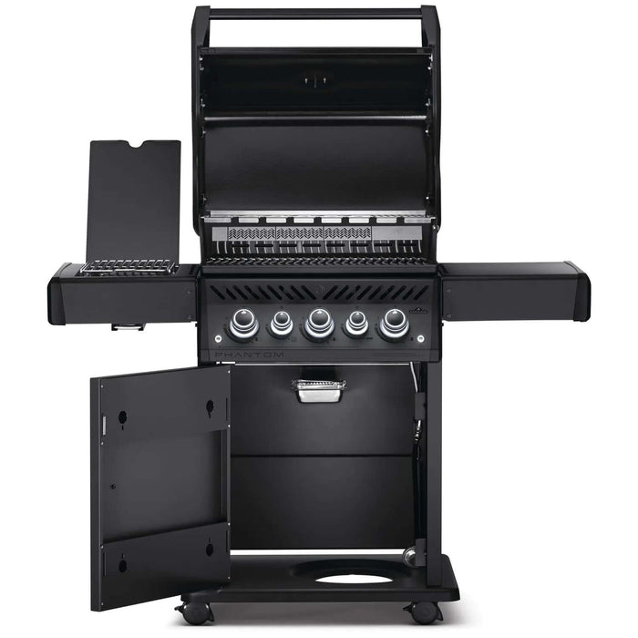 Deep and dark, the matte black Phantom Rogue® SE 425 Propane Gas Grill with Infrared Side and Rear Burners is a barbecue like no other. From the top of the lid to the easy to move locking casters, this gas barbecue is completely silky matte black. The edgy Phantom Rogue® SE features maintenance-free, stainless steel cooking grids and an integrated multifunctional grilling rack - ideal for entertaining. Sear the perfect steak or create a delightful side dish over the generous infrared sear station side burner. Use the rear infrared rotisserie burner to slow roast food to perfection. The generous folding side shelves provide plenty of prep and serving space while ensuring that your space is maximized. This luxurious matte black barbecue won't leave you in the dark either, the ergonomic knobs are backlit to ensure that late-night entertaining is easy. The Phantom Rogue® SE 425 Gas Grill is more than just a look. It's a lifestyle.