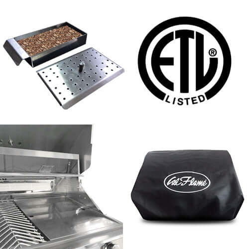 The Cal Flame P4 4-Burner Built In Gas Grill is the perfect pro-style grill for your outdoor environment. This Cal Flame 32-inch Grill is constructed with 304 stainless steel which features four 15,000 BTU cast stainless steel burners each with a reliable easy-start ignition system for easy start-up and one 15,000 BTU ceramic core infrared burner. This grill allows any burner to be switched out with an optional Sear Zone burner or Smoke Tray for enhanced grilling alternatives.