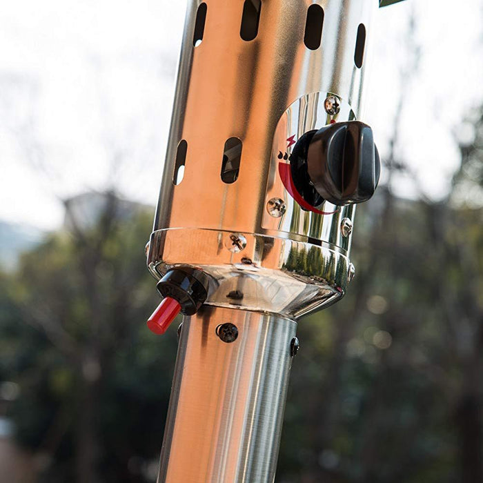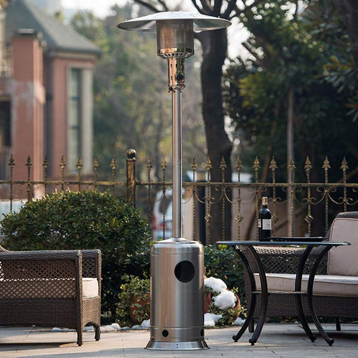 This 48,000 BTU Propane Patio Heater will make you feel warm in just a few minutes. Thanks to the unique flame emitter design, it heats faster and burns more efficiently than most heaters, warming up your patio, deck or porch immediately.