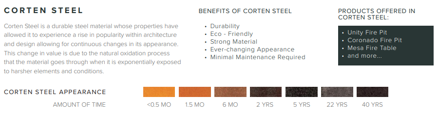 • Corten Steel or Hammered Copper options, with stainless steel internal components